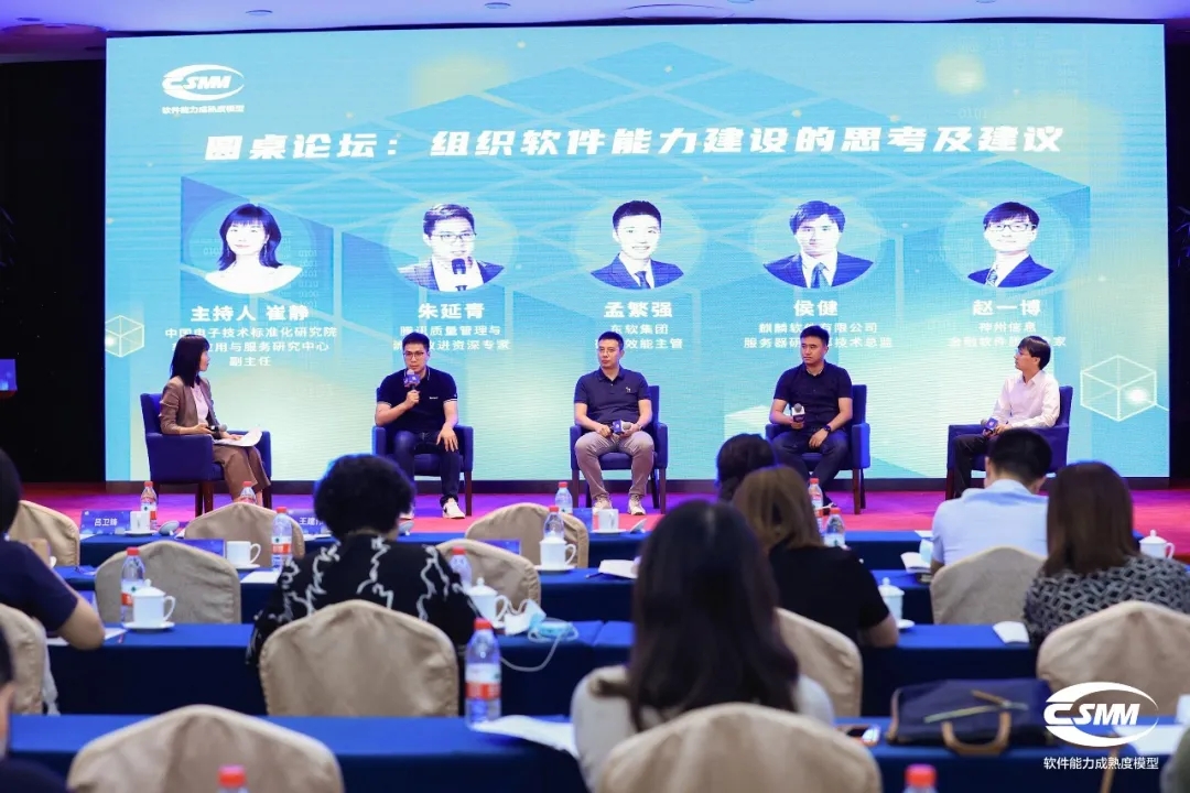现场,神州信息金融软件质量专家赵一博受邀参与以“组织软件能力建设的思考与建议”为主题的圆桌论坛,围绕软件能力的定义、组织软件能力的关键要素、对CSMM在组织中的落地以及对CSMM整体发展的建议等内容发表观点。